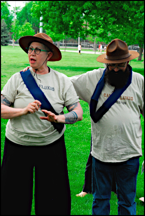 As you scroll down this page, you may notice that Jenifer Weigel and Jonathan Stangroom sometimes swap t-shirts and their camp duties. |